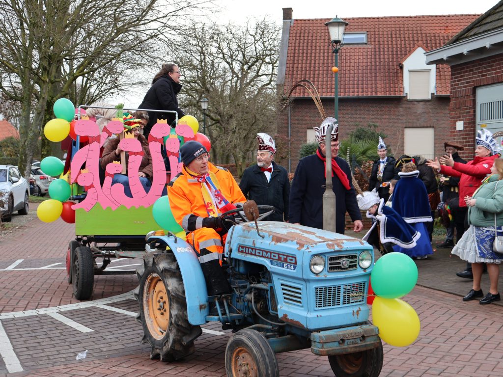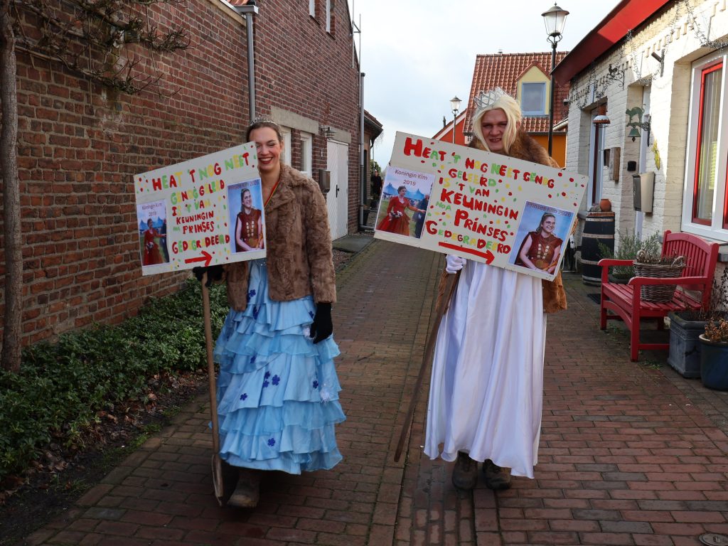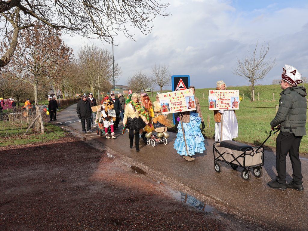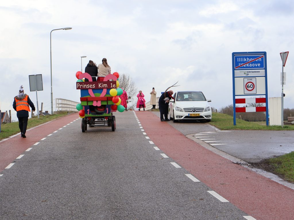 Maar hier kennen ze hun pappenheimers, een jongetje op de weg naar Illikhoven wordt even later overladen met ‘sjlok’, en prinses Kim dumpt haar ‘appelesiene’ gewoon bij mensen op het erf. Die vinden ze straks wel. Enkele dames stoppen op diverse adressen noten in de brievenbus, zo doneren ze hun ‘nootpakket’. Gevraagd naar het recept van de mini-vastelaovend hier, antwoorden ze: “De kleinschaligheid, jederein kint jederein”. Overigens krijgt ook prinses Kim het in de optocht behoorlijk te verduren. Een koppeltje stelt zich de vraag of ze nog niet genoeg heeft geleerd: “Van (schutters)koningin in 2019, naar prinses in 2026 gedegradeerd!”