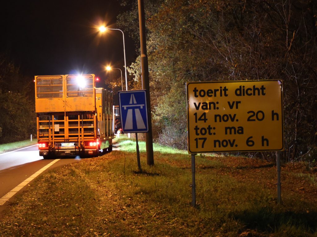 Vrijdagavond vlak voor negen uur. Op de Oude Sint Joosterweg bij Maasbracht staat een colonne wegwerkers klaar om in slagorde de A2 op te rijden. Op de naastgelegen A2 en A73 rijden de laatste auto’s zuidwaarts.