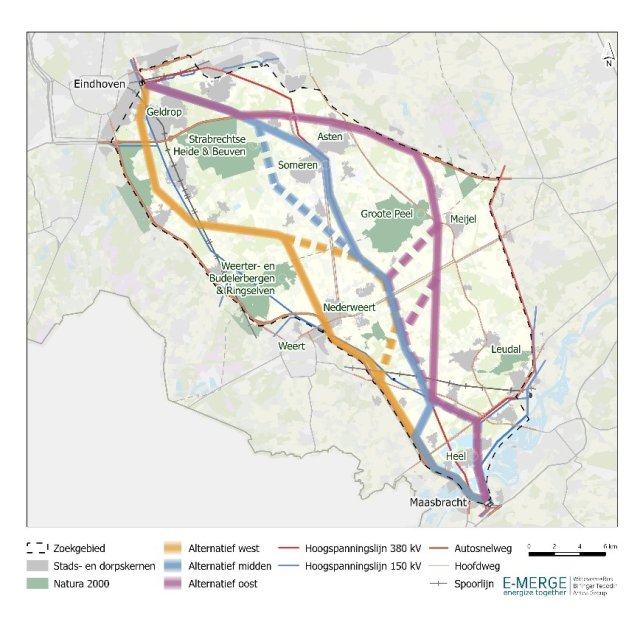 De drie mogelijke routes voor de nieuwe hoogspanningsverbinding tussen Maasbracht en Eindhoven zijn bekendgemaakt. Netbeheerder TenneT onderzoekt deze routes om het elektriciteitsnet in Limburg en Noord-Brabant klaar te maken voor de toekomst.
