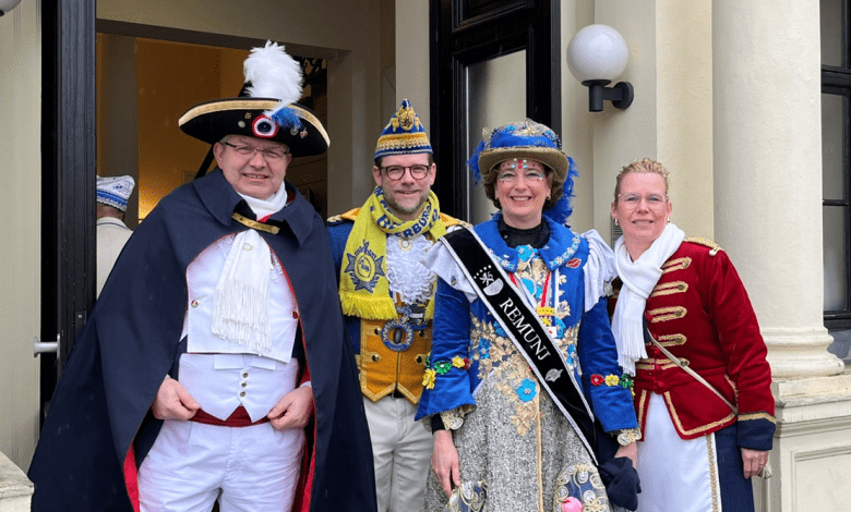 Met een jaartje vertraging kon Roermonds burgemeester Yolanda Hoogtanders (op de foto naast Oberbürgermeister Felix Heinrichs) dan toch deelnemen aan de Veilchendienstagsoptocht in partnerstad Mönchengladbach. Vorig jaar kwam het organisatorisch allemaal niet zo goed uit. De burgemeester werd vergezeld door de Roermondse Stadts-garde.
